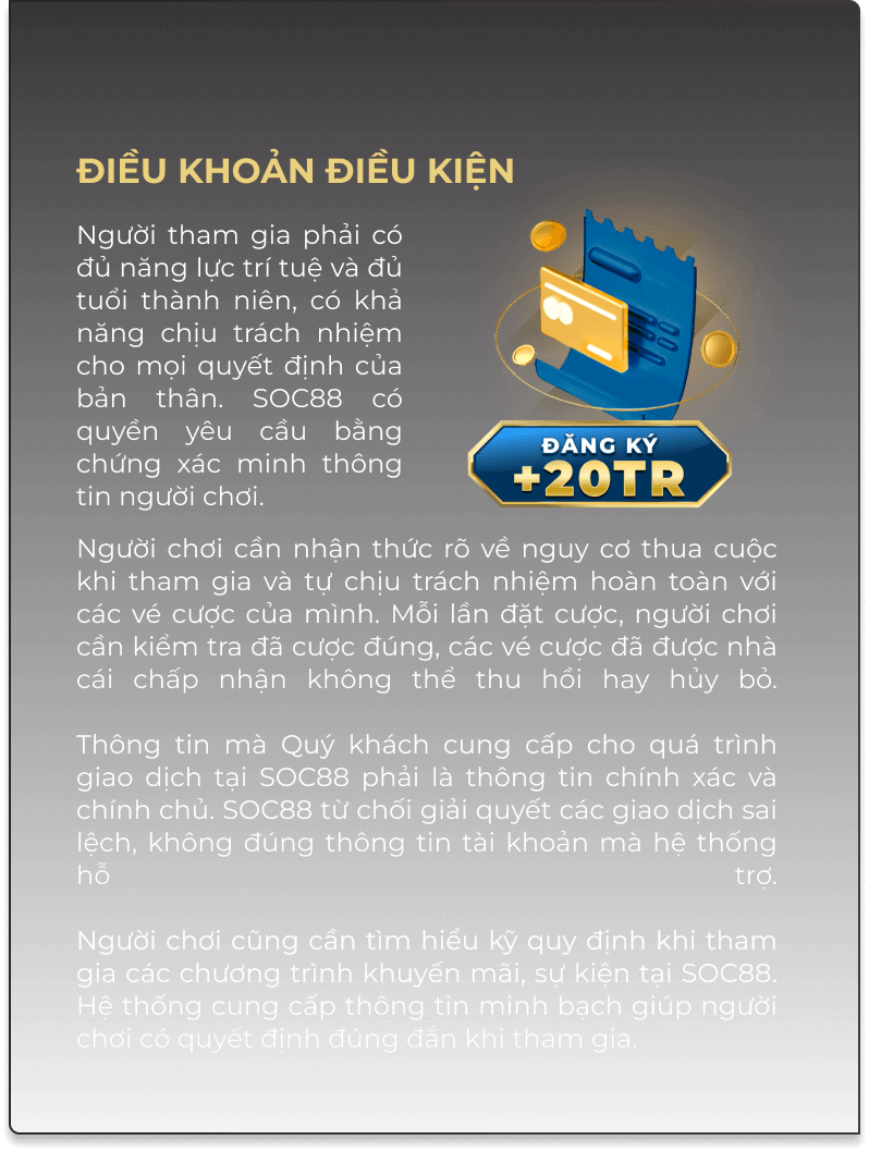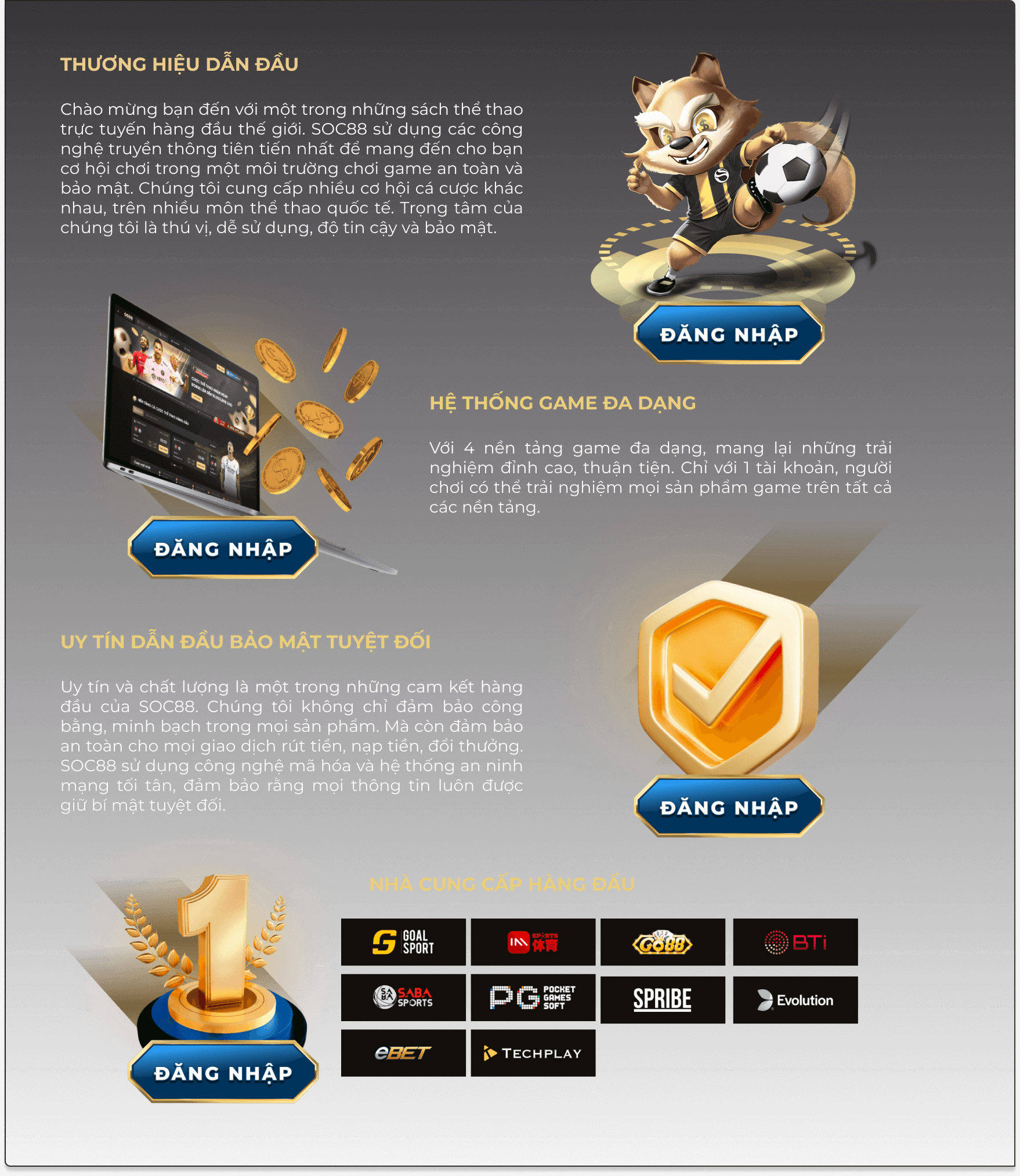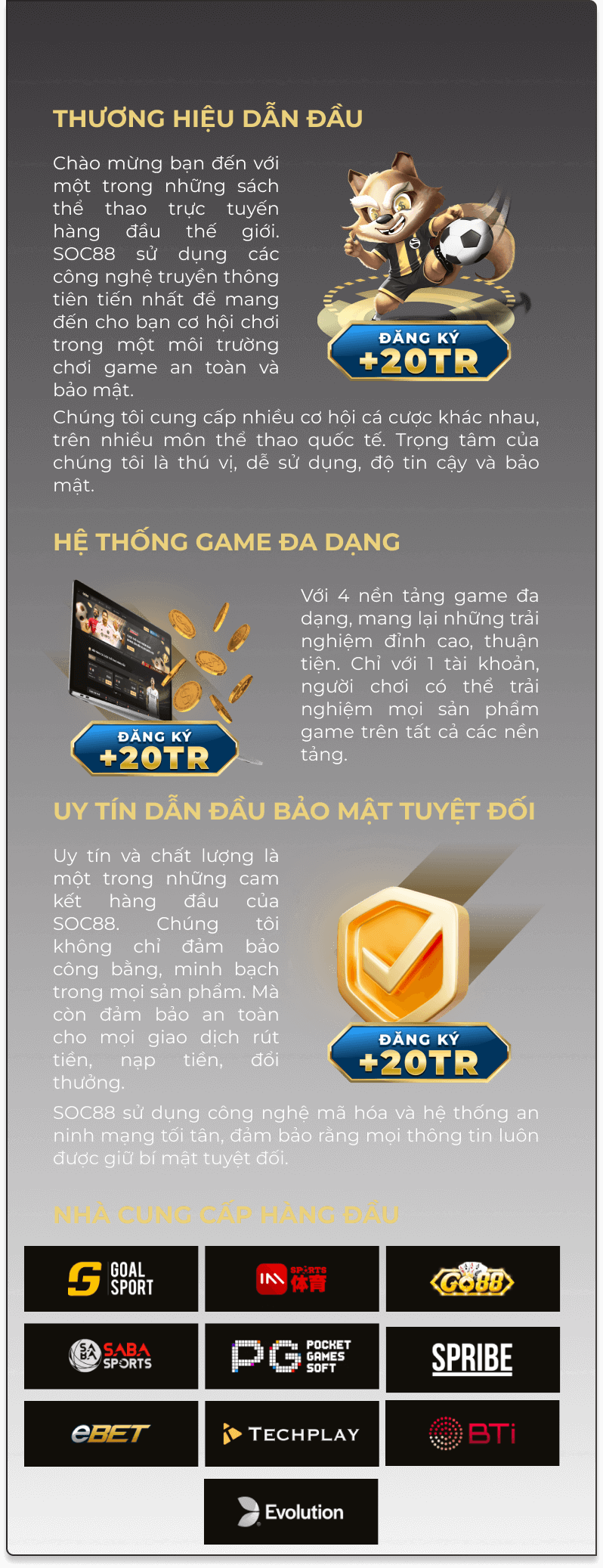 Chào mừng bạn đến với một trong những sách thể thao trực tuyến hàng đầu thế giới. SOC88 sử dụng các công nghệ truyền thông tiên tiến nhất để mang đến cho bạn cơ hội chơi trong một môi trường chơi game an toàn và bảo mật. Chúng tôi cung cấp nhiều cơ hội cá cược khác nhau, trên nhiều môn thể thao quốc tế. Trọng tâm của chúng tôi là thú vị, dễ sử dụng, độ tin cậy và bảo mật.